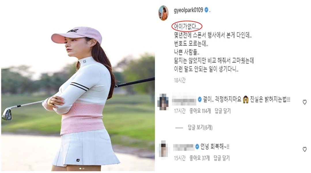 미녀 골프 선수 "박결" 유명 기혼 남성 연예인 ○○ 과 불륜설 "어이없다"