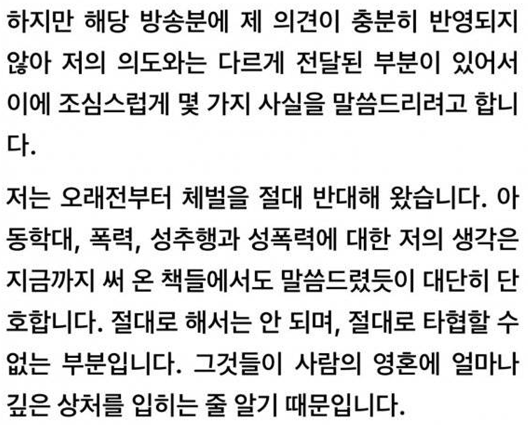 하지만 해당 결혼지옥의 방송 편집분에서 오은영 박사가 말하는 의견이 충분히 반영되지 않고 편집이 되어 송출 된것이 오은영 박사의 의도와는 다르게 전달된 부분이 있어서 자신의 입장을 조심스럽게 몇가지 말씀을 드리려 한다고 말하였다.